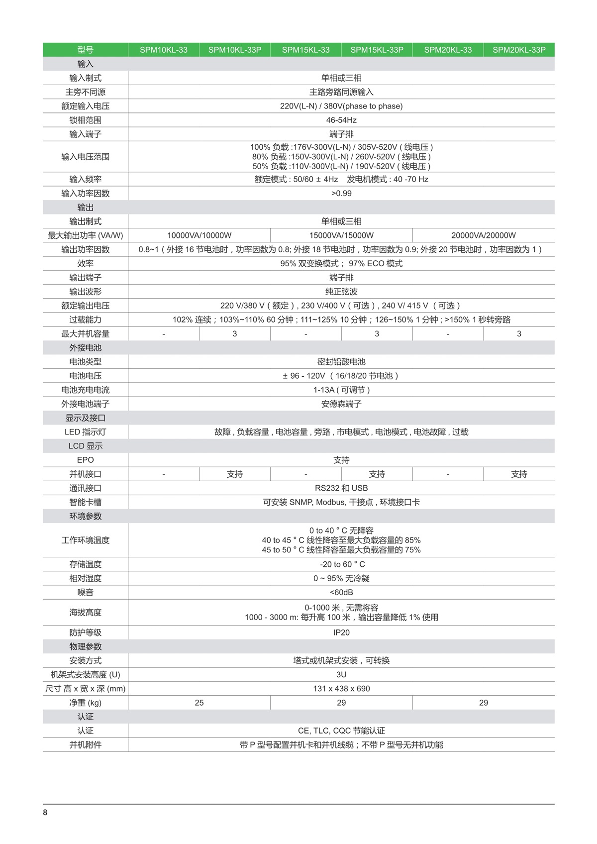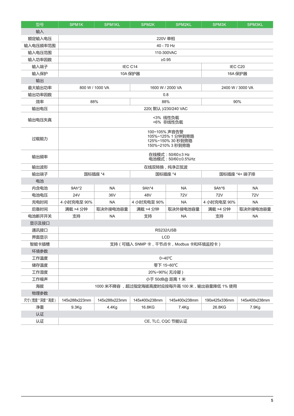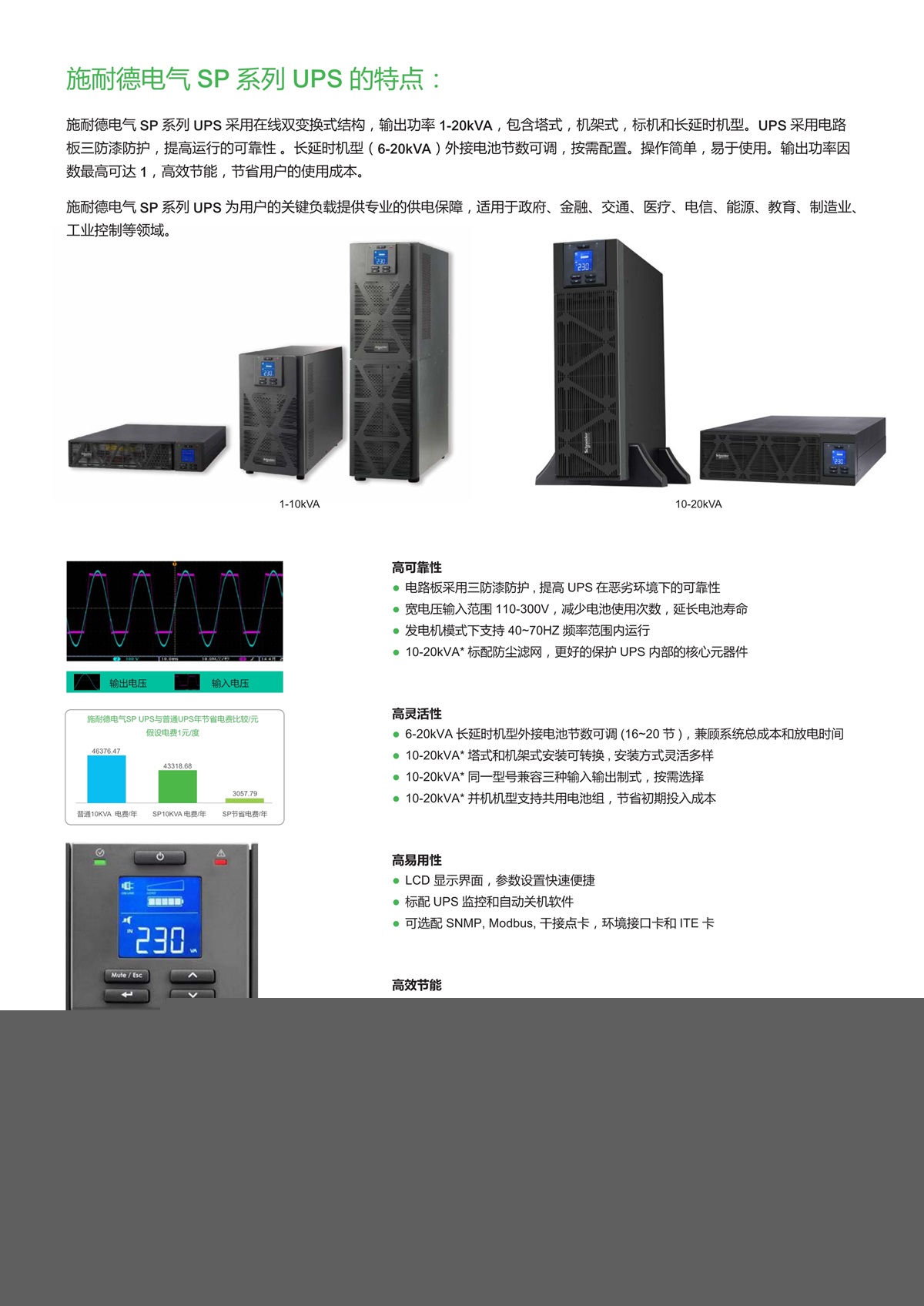 优势1. 110-300V宽电压输入范围,减少电池使用次数,延长电池寿命2. 采用三防漆,适应多种严苛使用环境3. 1~3kVA标配电池断开装置,延长电池寿命4. 人性化LCD界面,方便监控及维护5. 2 年保修,上门换机,服务覆盖全国