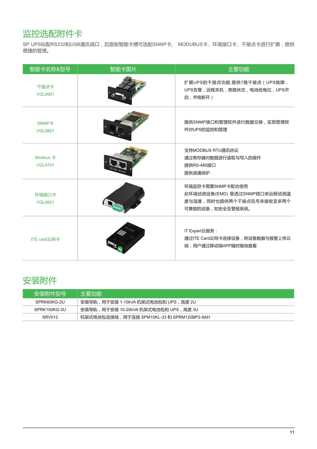 特性1.输出功率1-20kVA2.在线模式效率高达 94%3.输入功率因数高达 0.994.输出功率因数最高可达15.支持发电机模式下 40~70HZ 电压频率范围,适应各种电力环境6.智能插槽可安装 SNMP, Modbus, 干接点 , 环境接口卡