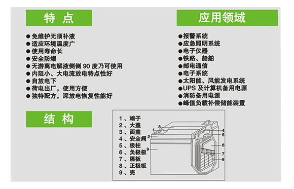 特点:浮充期待寿命7年(25℃)/10年(20℃);