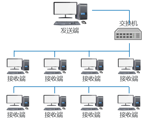 不论是网络同传模块还是网络控制工具,使用时均需依赖网络环境来完成系统的快速分发部署及中断管控,机房管理系统的涉及重点考虑的是统一局域网下一批主机的集中管理,其支持的网络拓扑结构如下: