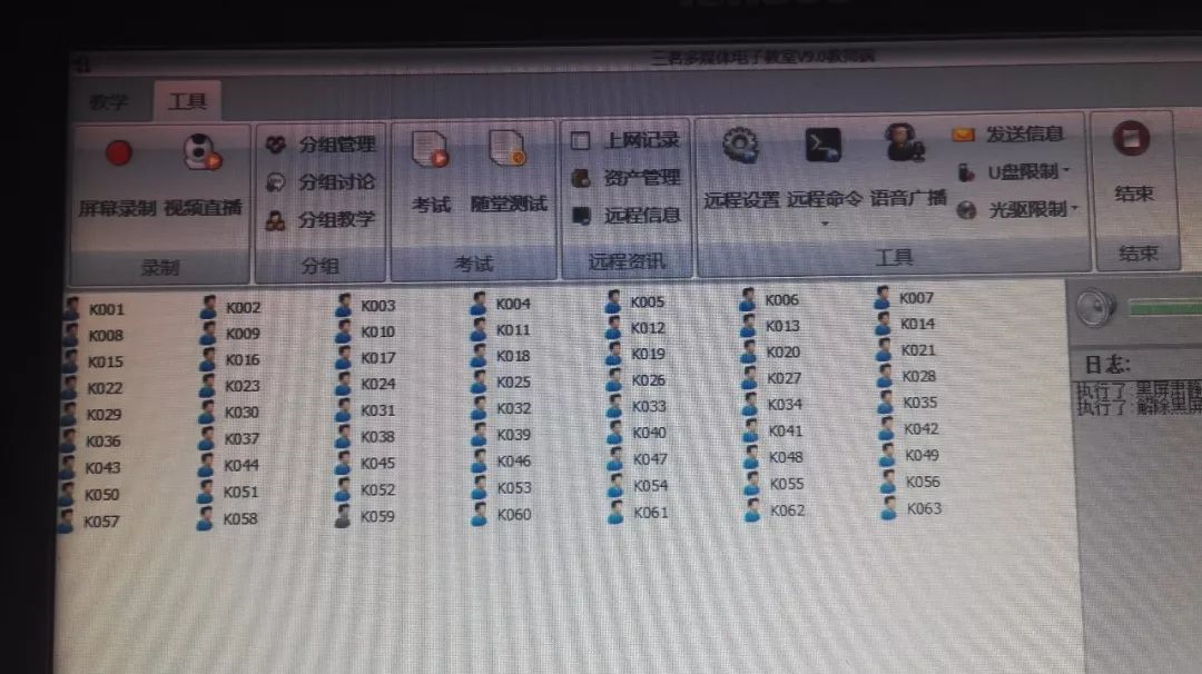 远程监看:每个学生机的画面实时地显示在老师机的屏幕上,老师可以及时地了解学生正在进行的学习进度。